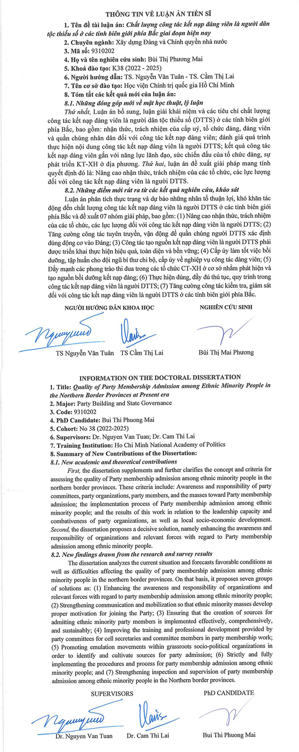 Luận án và tóm tắt luận án của Nghiên cứu sinh Đặng Bá Vinh sau bảo vệ cấp Học viện