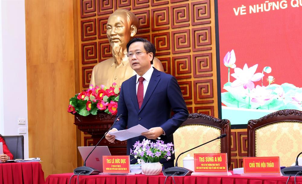 Đồng chí Phó Bí thư Thường trực Tỉnh ủy tin tưởng rằng, kết quả của hội thảo sẽ góp phần củng cố niềm tin, thống nhất nhận thức và nâng cao trách nhiệm chính trị của cán bộ, đảng viên và nhân dân các dân tộc; tạo sức lan tỏa mạnh mẽ trong công tác tuyên truyền, giáo dục lý luận chính trị, bảo vệ vững chắc nền tảng tư tưởng của Đảng. Trong bối cảnh toàn Đảng, toàn dân, toàn quân ta đang ra sức thi đua lập thành tích chào mừng Đại hội XIV của Đảng, Lai Châu sẽ tiếp tục phát huy truyền thống đoàn kết, bản lĩnh và khát vọng đổi mới; cùng cả nước giữ vững trận địa tư tưởng, góp phần xây dựng đất nước Việt Nam phồn vinh, hạnh phúc.