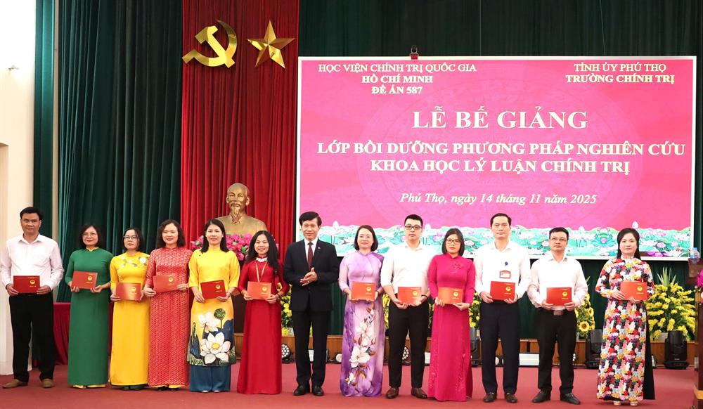 Chiều 14/11/2025, Ban Chỉ đạo Đề án 587, Học viện Chính trị quốc gia Hồ Chí Minh phối hợp với Trường Chính trị tỉnh Phú Thọ tổ chức Lễ bế giảng Lớp Bồi dưỡng phương pháp nghiên cứu khoa học lý luận chính trị năm 2025. PGS,TS Hoàng Phúc Lâm, Phó Bí thư Đảng uỷ, Phó Giám đốc Học viện Chính trị quốc gia Hồ Chí Minh, Chủ nhiệm Đề án 587 dự và chủ trì buổi Lễ.