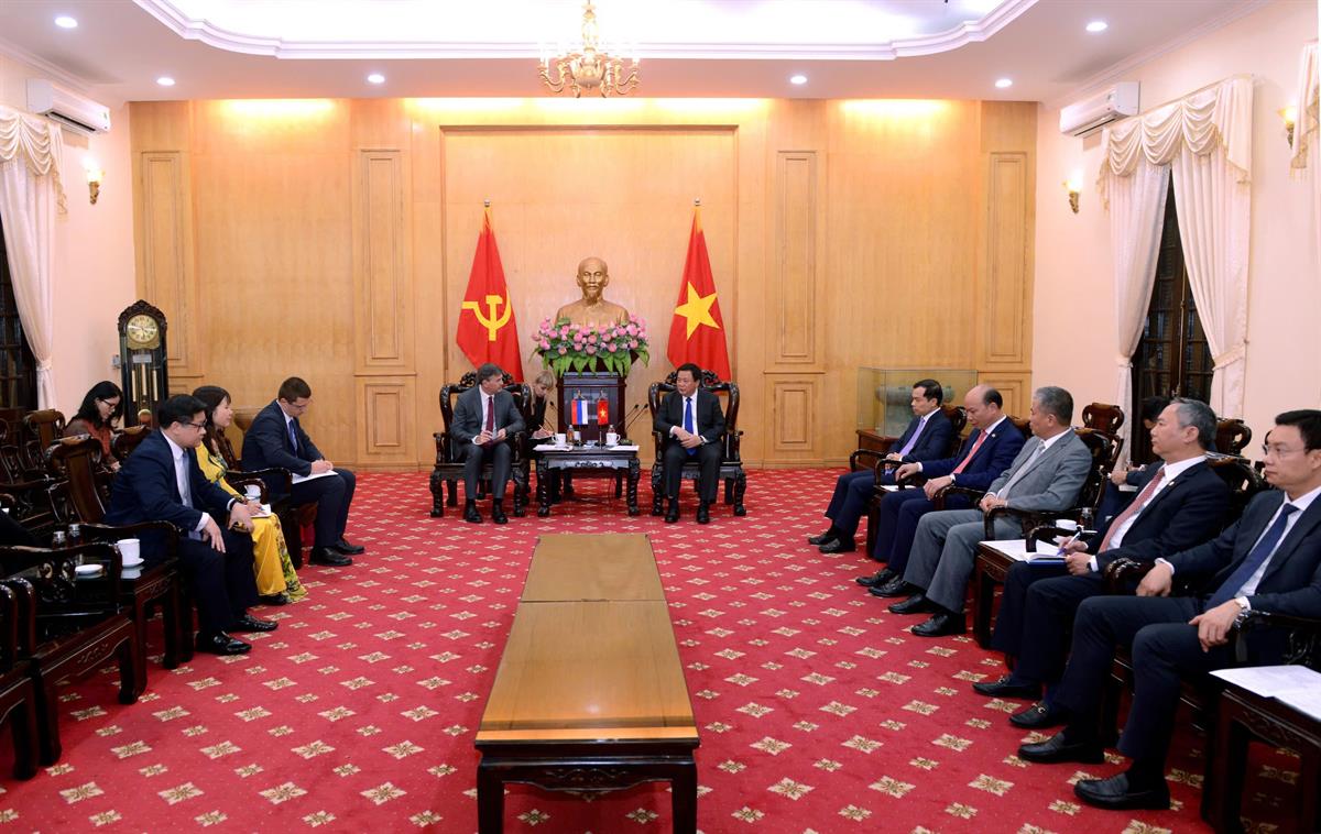 Dự buổi tiếp và làm việc có PGS,TS Nguyễn Mạnh Hùng, Phó Giám đốc Học viện Chính trị quốc gia Hồ Chí Minh, Phó Chủ tịch Hội đồng Lý luận Trung ương; đại diện lãnh đạo các đơn vị trực thuộc Học viện Chính trị quốc gia Hồ Chí Minh; đại diện lãnh đạo các đơn vị trực thuộc RANEPA.