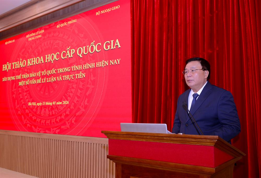 Sáng ngày 13/01/2026, tại Hà Nội, Hội đồng Lý luận Trung ương phối hợp với Bộ Quốc phòng, Bộ Công an và Bộ Ngoại giao tổ chức Hội thảo khoa học cấp quốc gia với chủ đề: “Xây dựng thế trận bảo vệ Tổ quốc trong tình hình hiện nay - Một số vấn đề lý luận và thực tiễn”. Hội thảo nhằm góp phần hệ thống, bổ sung, phát triển tư duy, nhận thức về thế trận bảo vệ Tổ quốc trong kỷ nguyên phát triển mới của đất nước.