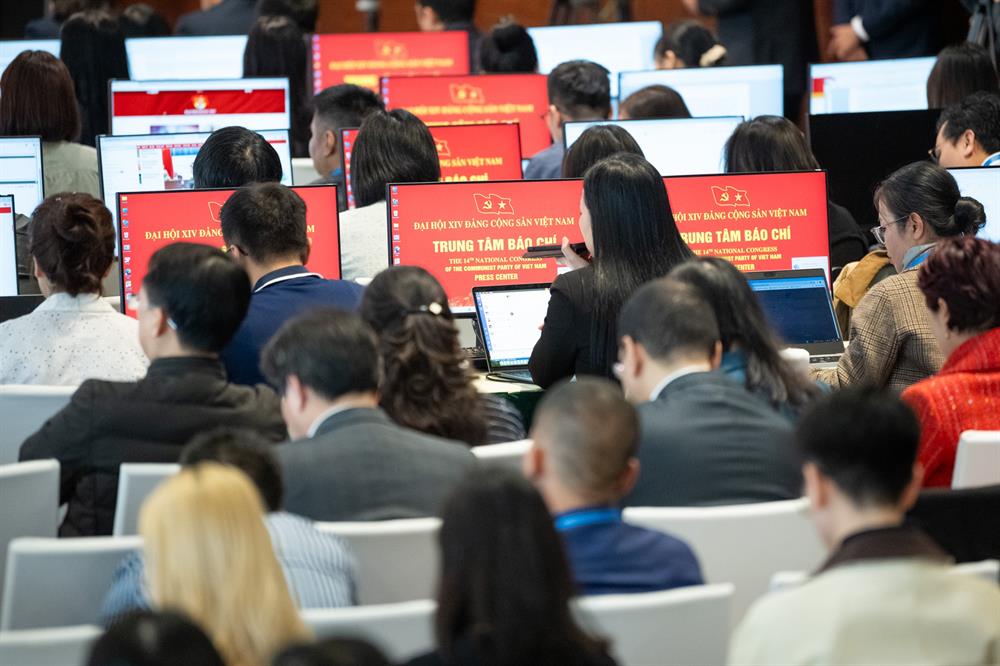 Các đại biểu tại Trung tâm Báo chí Đại hội XIV của Đảng