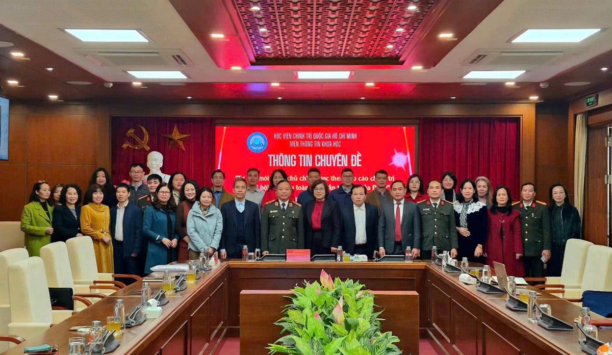 Chủ trì hội nghị có TS Phạm Thị Thành, Viện trưởng Viện Thông tin khoa học, Học viện Chính trị quốc gia Hồ Chí Minh. Báo cáo viên tại hội nghị là Trung tướng, PGS,TS Phan Xuân Tuy, Giám đốc Học viện Chính trị Công an nhân dân, Bộ Công an.