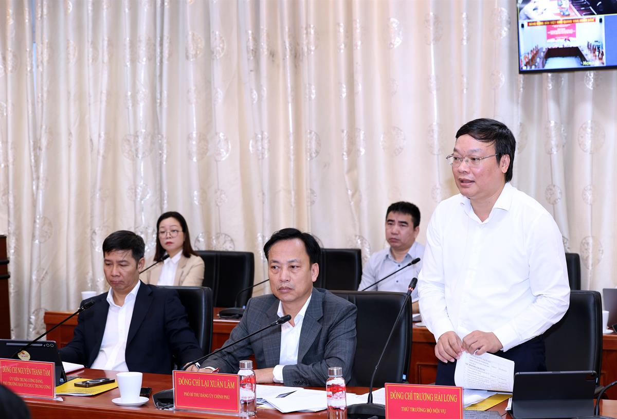 Đồng chí Trương Hải Long, Thứ trưởng Bộ Nội vụ tham góp ý kiến tại hội nghị