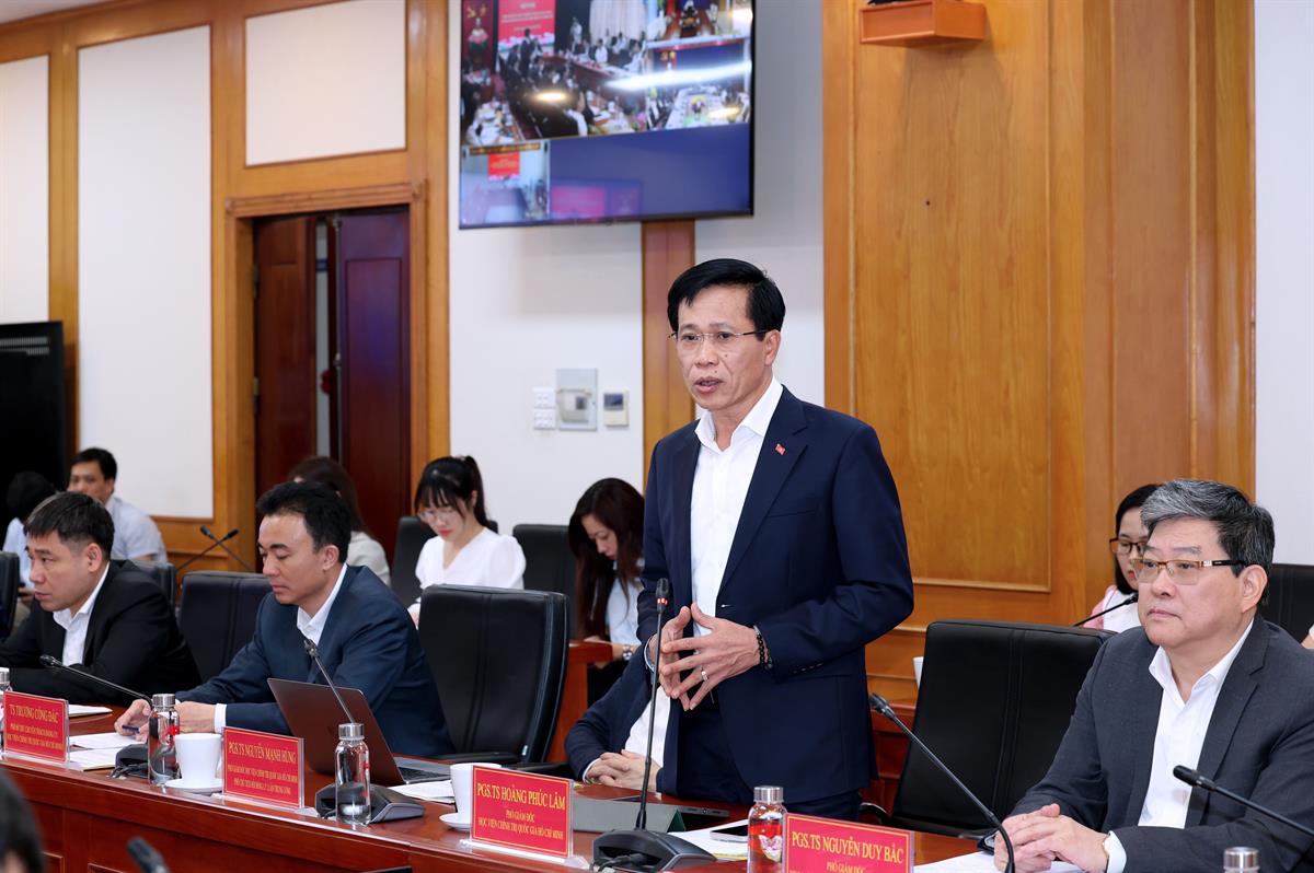 Tại hội nghị, PGS,TS Nguyễn Duy Bắc, Phó Giám đốc Học viện báo cáo dự thảo Kế hoạch thực hiện Kết luận của đồng chí Tổng Bí thư Tô Lâm tại Thông báo số 21-TB/VPTW ngày 07/3/2026 của Văn phòng Trung ương Đảng về giải pháp nâng cao chất lượng đội ngũ cán bộ cơ sở. Đồng chí cho biết, dự thảo Kế hoạch được xây dựng trên cơ sở quán triệt các nghị quyết, kết luận của Trung ương, Bộ Chính trị, Ban Bí thư về công tác cán bộ; đồng thời bám sát yêu cầu đổi mới tổ chức bộ máy, xây dựng chính quyền địa phương hai cấp, đẩy mạnh cải cách hành chính, chuyển đổi số và nâng cao chất lượng phục vụ nhân dân trong giai đoạn phát triển mới.
