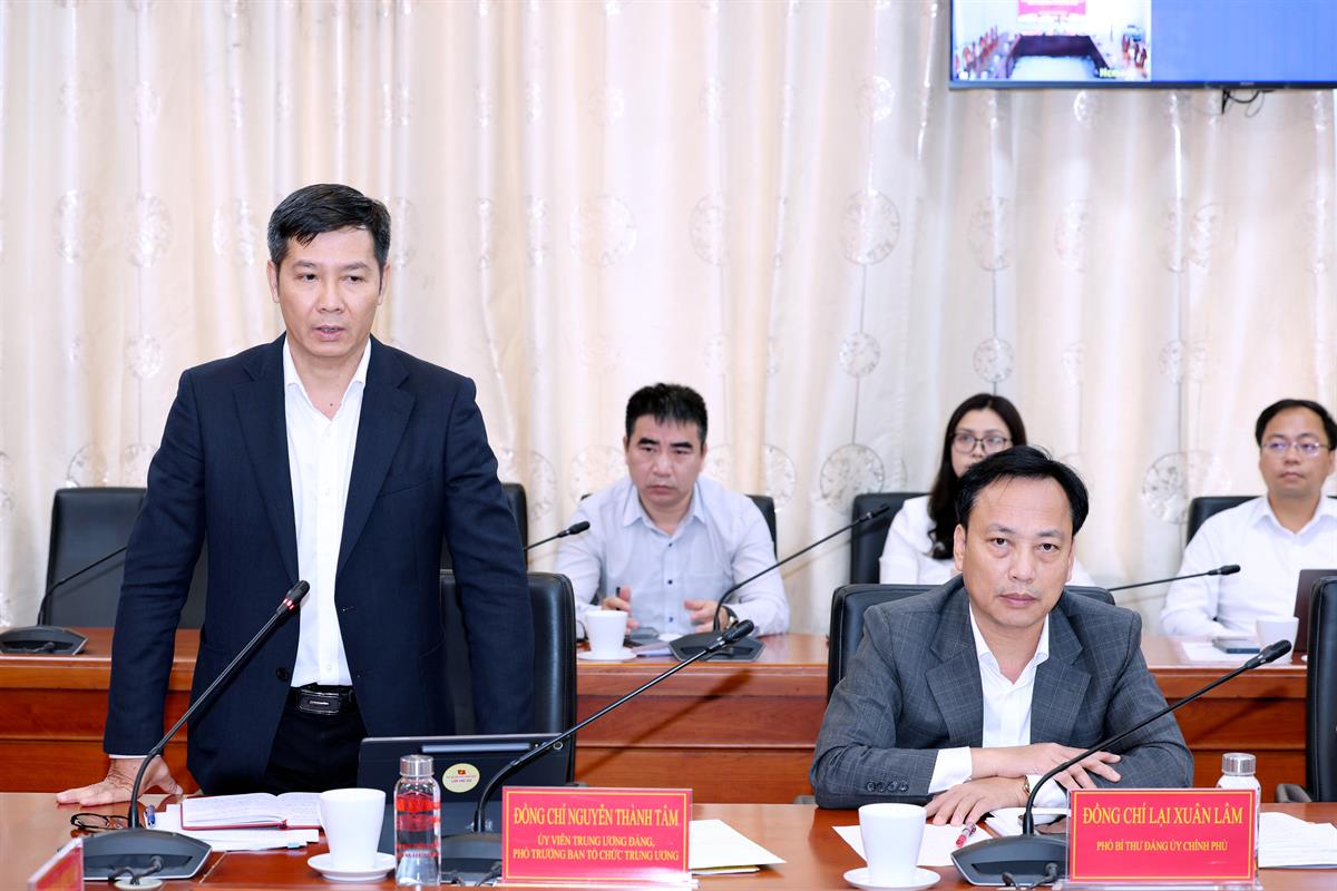 Đồng chí Nguyễn Thành Tâm, Ủy viên Trung ương Đảng, Phó Trưởng Ban Tổ chức Trung ương tham góp ý kiến tại hội nghị