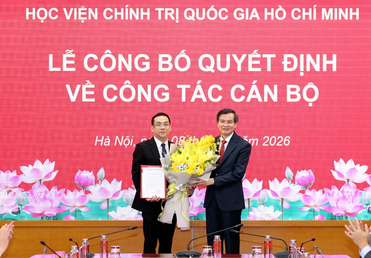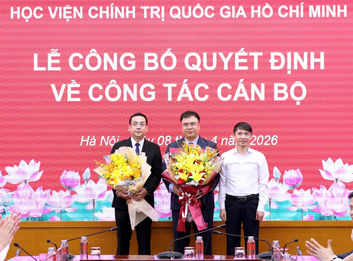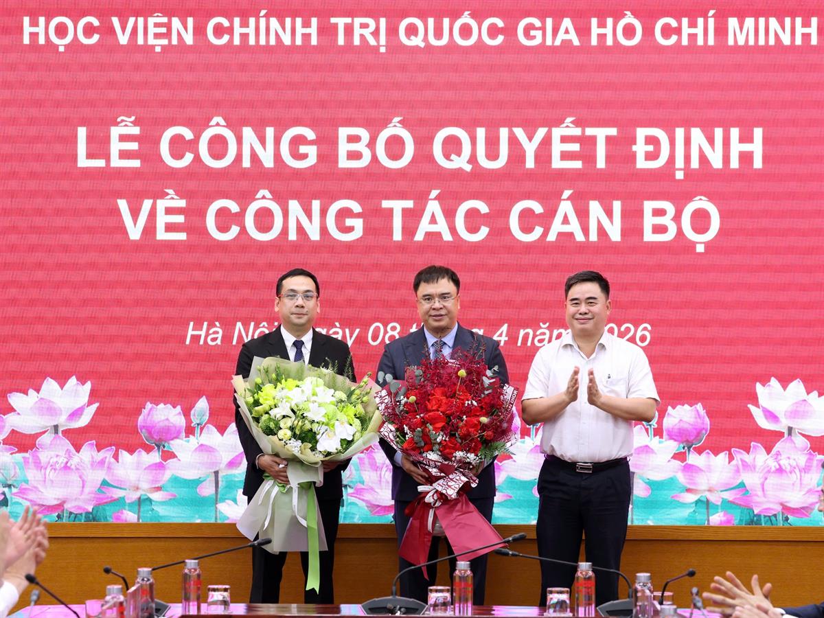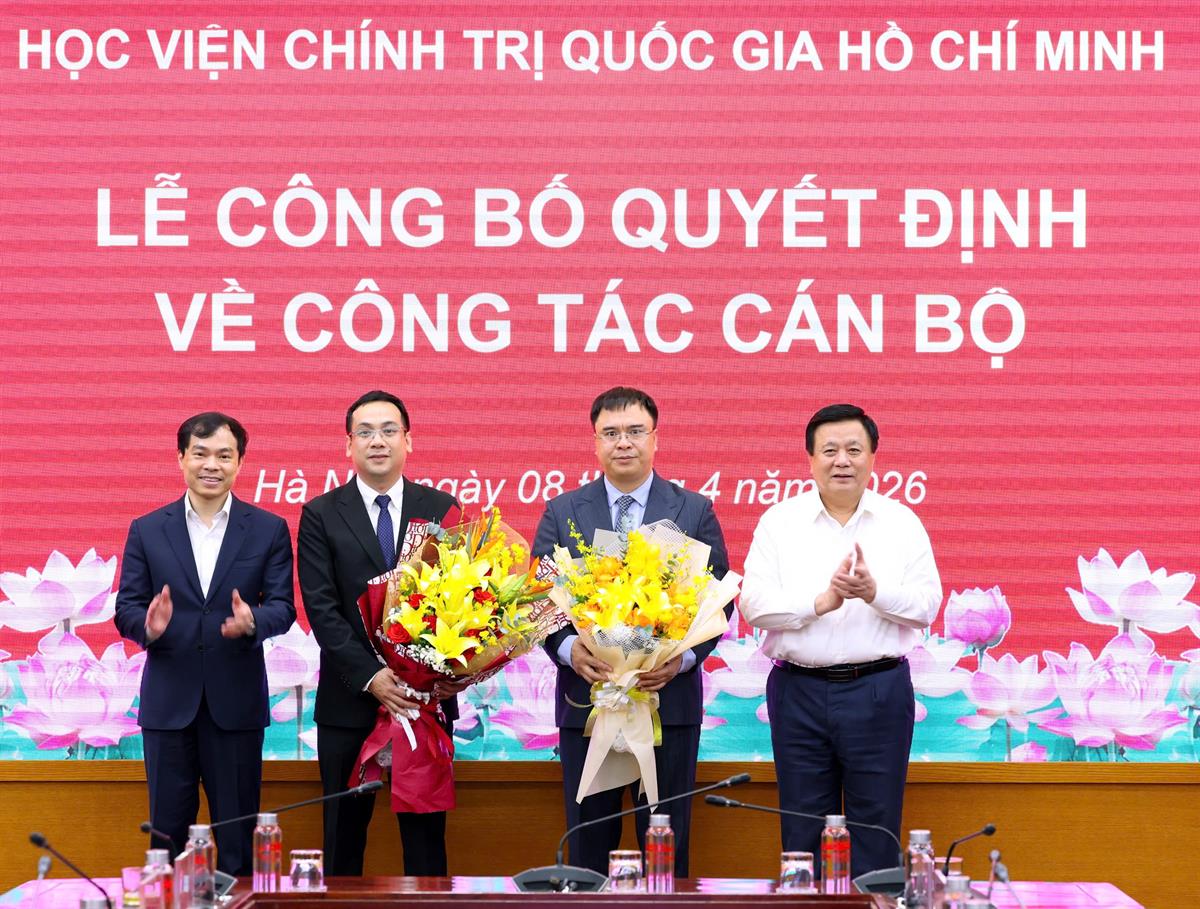 Chiều ngày 08/4/2026, tại Hà Nội, Học viện Chính trị quốc gia Hồ Chí Minh tổ chức Lễ công bố quyết định bổ nhiệm Trợ lý, Thư ký đồng chí Uỷ viên Bộ Chính trị, Giám đốc Học viện Chính trị quốc gia Hồ Chí Minh. Lễ công bố được kết nối trực tuyến đến 06 điểm cầu các Học viện trực thuộc. PGS,TS Đoàn Minh Huấn, Uỷ viên Bộ Chính trị, Bí thư Đảng uỷ, Giám đốc Học viện Chính trị quốc gia Hồ Chí Minh dự và chủ trì buổi Lễ.