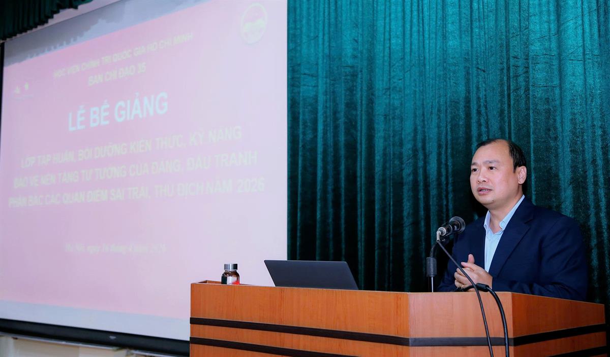 Phát biểu bế giảng, PGS,TS Lê Hải Bình, Ủy viên Ban Chấp hành Trung ương Đảng, Phó Giám đốc thường trực Học viện đánh giá cao sự nỗ lực, tinh thần trách nhiệm của Ban Tổ chức lớp, đội ngũ báo cáo viên cũng như thái độ học tập nghiêm túc, cầu thị của các học viên trong suốt quá trình tham gia lớp tập huấn. Đồng chí nhấn mạnh, trong bối cảnh tình hình thế giới và khu vực có nhiều diễn biến phức tạp, đặc biệt là sự phát triển nhanh chóng của không gian mạng với những tác động đa chiều, việc chủ động trang bị, cập nhật kiến thức và rèn luyện kỹ năng cho lực lượng nòng cốt có ý nghĩa hết sức quan trọng, góp phần nâng cao năng lực nhận diện, phân tích và xử lý các vấn đề nảy sinh trong thực tiễn.