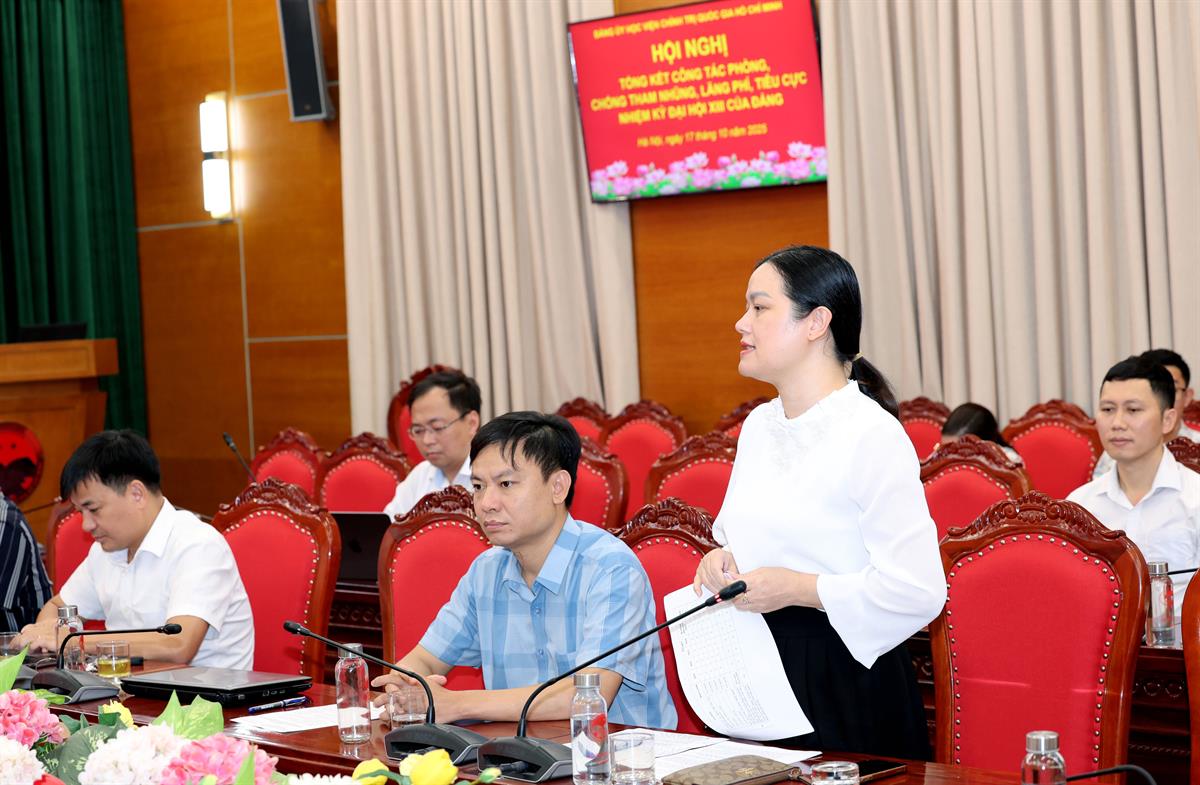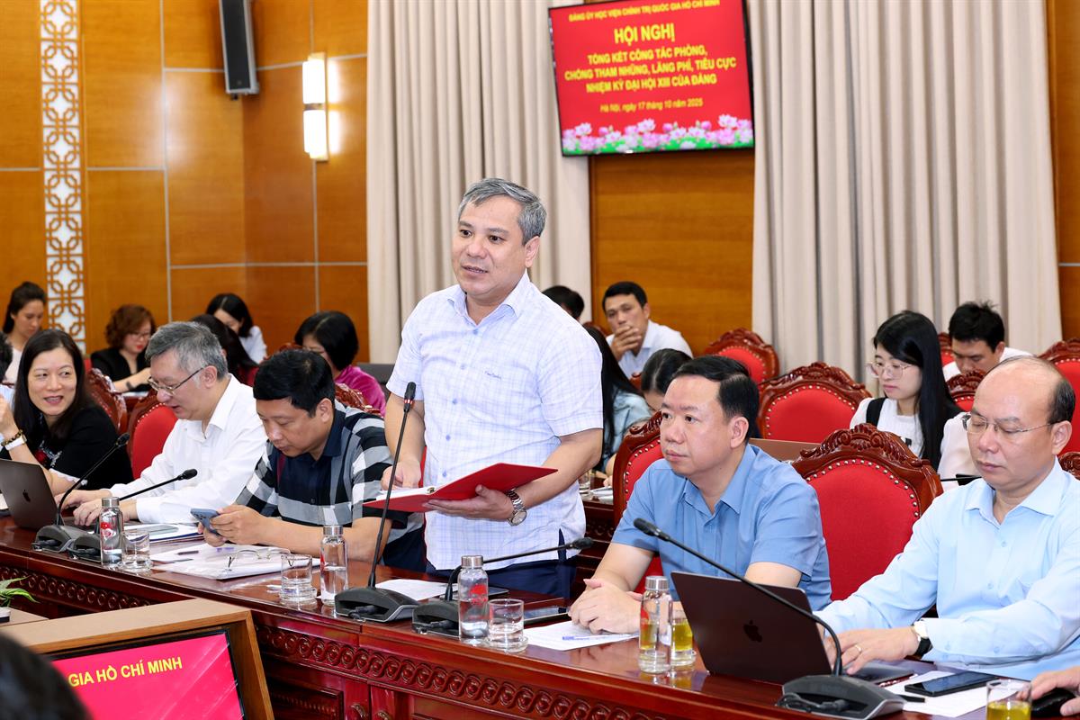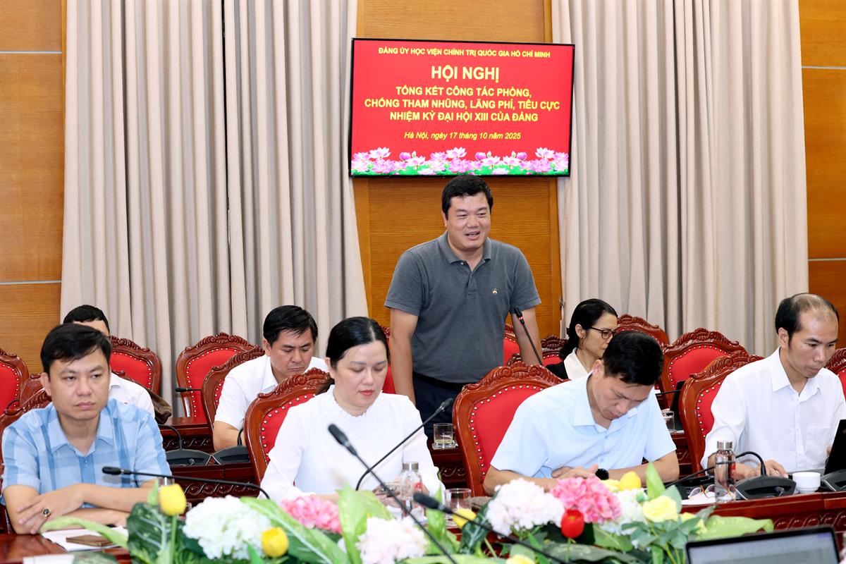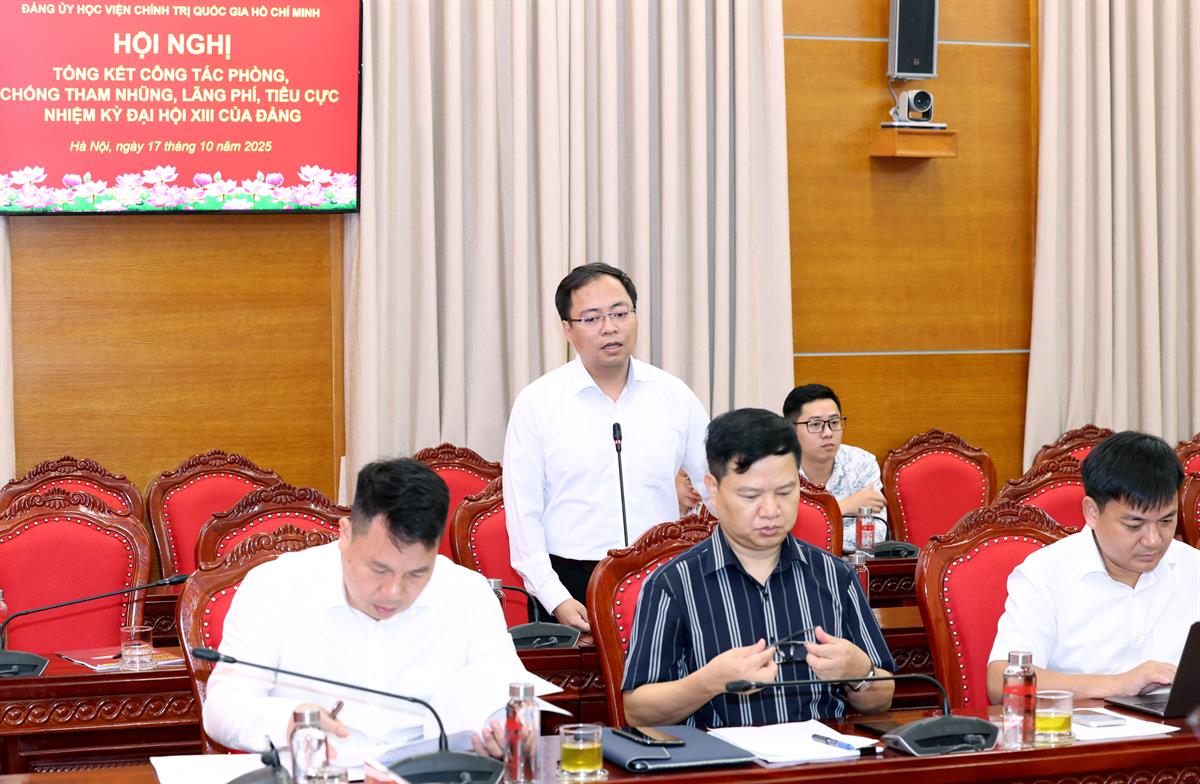 Với ý nghĩa đó, đồng chí Uỷ viên Ban Thường vụ, Chủ nhiệm Uỷ ban Kiểm tra Đảng uỷ, Phó Giám đốc Học viện Chính trị quốc gia Hồ Chí Minh khẳng định việc tổ chức Hội nghị Tổng kết công tác phòng, chống tham nhũng, lãng phí, tiêu cực nhiệm kỳ Đại hội XIII của Đảng trong Đảng bộ Học viện Chính trị quốc gia Hồ Chí Minh là thực sự cần thiết nhằm nhìn nhận, đánh giá một cách toàn diện, khách quan về kết quả, bài học, kinh nghiệm của công tác phòng, chống tham nhũng, lãng phí, tiêu cực tại Học viện thời gian qua; đồng thời xác định rõ hơn những định hướng, nhiệm vụ, giải pháp trọng tâm giai đoạn tới trong bối cảnh toàn Đảng, toàn dân, toàn quân ta đang ra sức thi đua lập thành tích chào mừng Đại hội đại biểu toàn quốc lần thứ XIV của Đảng.
