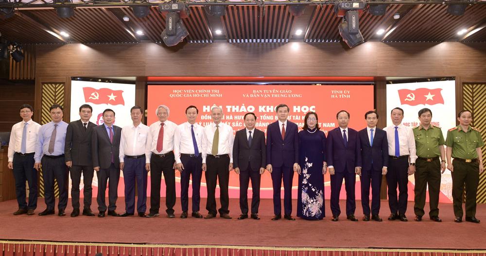 Dự và chủ trì Hội thảo có các đồng chí: Đoàn Minh Huấn, Ủy viên Bộ Chính trị, Giám đốc Học viện Chính trị quốc gia Hồ Chí Minh; Trịnh Văn Quyết, Ủy viên Bộ Chính trị, Bí thư Trung ương Đảng, Trưởng Ban Tuyên giáo và Dân vận Trung ương; Nguyễn Duy Lâm, Ủy viên Ban Chấp hành Trung ương Đảng, Bí thư Tỉnh ủy Hà Tĩnh; Đinh Thị Mai, Phó Trưởng Ban Tuyên giáo và Dân vận Trung ương; Nguyễn Mạnh Hùng, Phó Giám đốc Học viện Chính trị quốc gia Hồ Chí Minh, Phó Chủ tịch, Tổng Thư ký Hội đồng Lý luận Trung ương.
