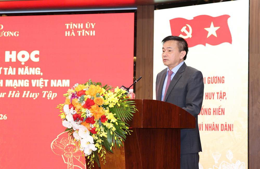 Phát biểu khai mạc và đề dẫn Hội thảo, đồng chí Đoàn Minh Huấn khẳng định việc nghiên cứu, đánh giá và tôn vinh đồng chí Hà Huy Tập không chỉ dừng lại ở ý nghĩa lịch sử, mà còn mang giá trị thời sự sâu sắc đối với công tác xây dựng Đảng và sự nghiệp phát triển đất nước hiện nay.
